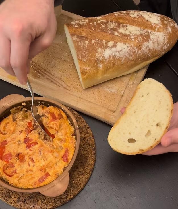 Biber, domates, lor peyniri ve bazen et ile yapılan geleneksel bir Tiran yemeğidir. Sıcak servis edilir.