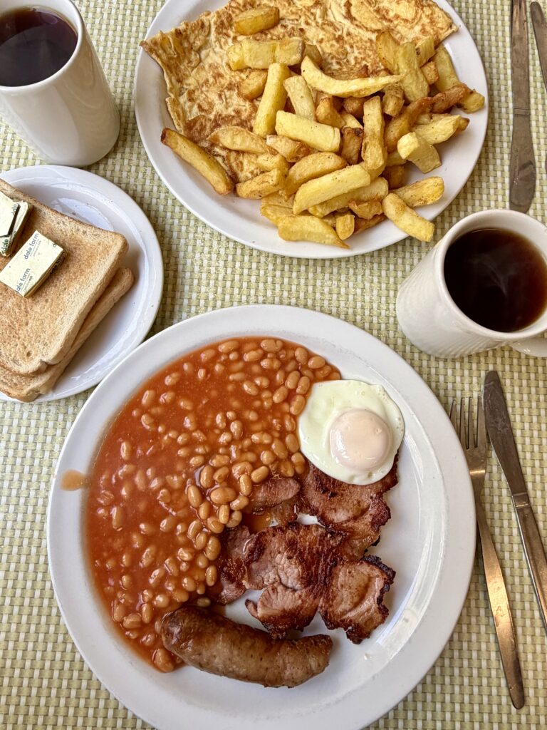 Full English Breakfast – Yumurta, sosis, pastırma, mantar, fasulye ve domatesten oluşan kahvaltı tabağı